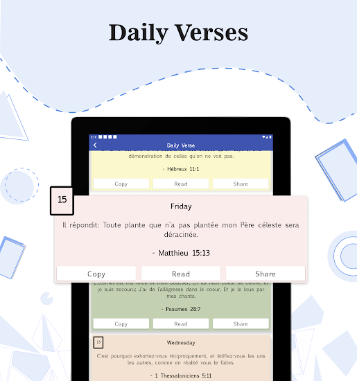Android application Parole De Vie 2017 developed by Oly Bible is listed under category Books & Reference. According to Google Play Parole De Vie 2017 achieved more than 50,000 installs. Parole De Vie 2017 currently has 346 ratings with average rating value of 4.84. The current percentage of ratings achieved in last 30 days is 3.9%, percentage of ratings achieved in last 60 days is 53.34%. Parole De Vie 2017 has the current market position #158946 by number of ratings. A sample of the market history data for Parole De Vie 2017 can be found below. Last update on 2026-01-04.