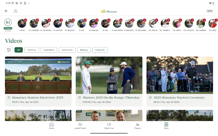 Android application The Masters Golf Tournament developed by Masters Tournament is listed under category Sports. According to Google Play The Masters Golf Tournament achieved more than 1,000,000 installs. The Masters Golf Tournament currently has 10,826 ratings with average rating value of 3.88. The current percentage of ratings achieved in last 30 days is 0.04%, percentage of ratings achieved in last 60 days is 0.09%. The Masters Golf Tournament has the current market position #42651 by number of ratings. A sample of the market history data for The Masters Golf Tournament can be found below. Last update on 2026-01-04.